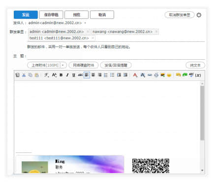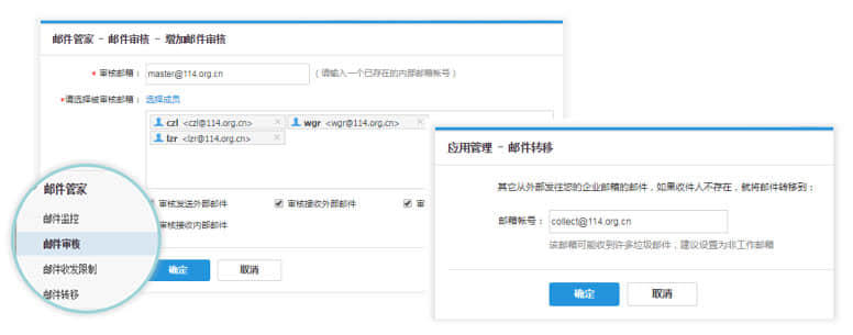功能更多,空間容量更大,大大提高企業(yè)郵箱的穩(wěn)定高效性,反垃圾反病毒性能更強,郵件收發(fā)速度更快。 擁有企業(yè)郵箱可以為自己的員工設置電子郵箱,還可以根據需要設置不同的管理權限,以及部門成員之間或者公司全體員工之間的群發(fā)功能等等,除了一般的終端郵件程序方式(如outlook)收發(fā)E-mail之外,還可以實現WEB方式收發(fā)和管理郵件,比一般ISP提供的電子郵箱和虛擬主機提供的信箱更為方便。