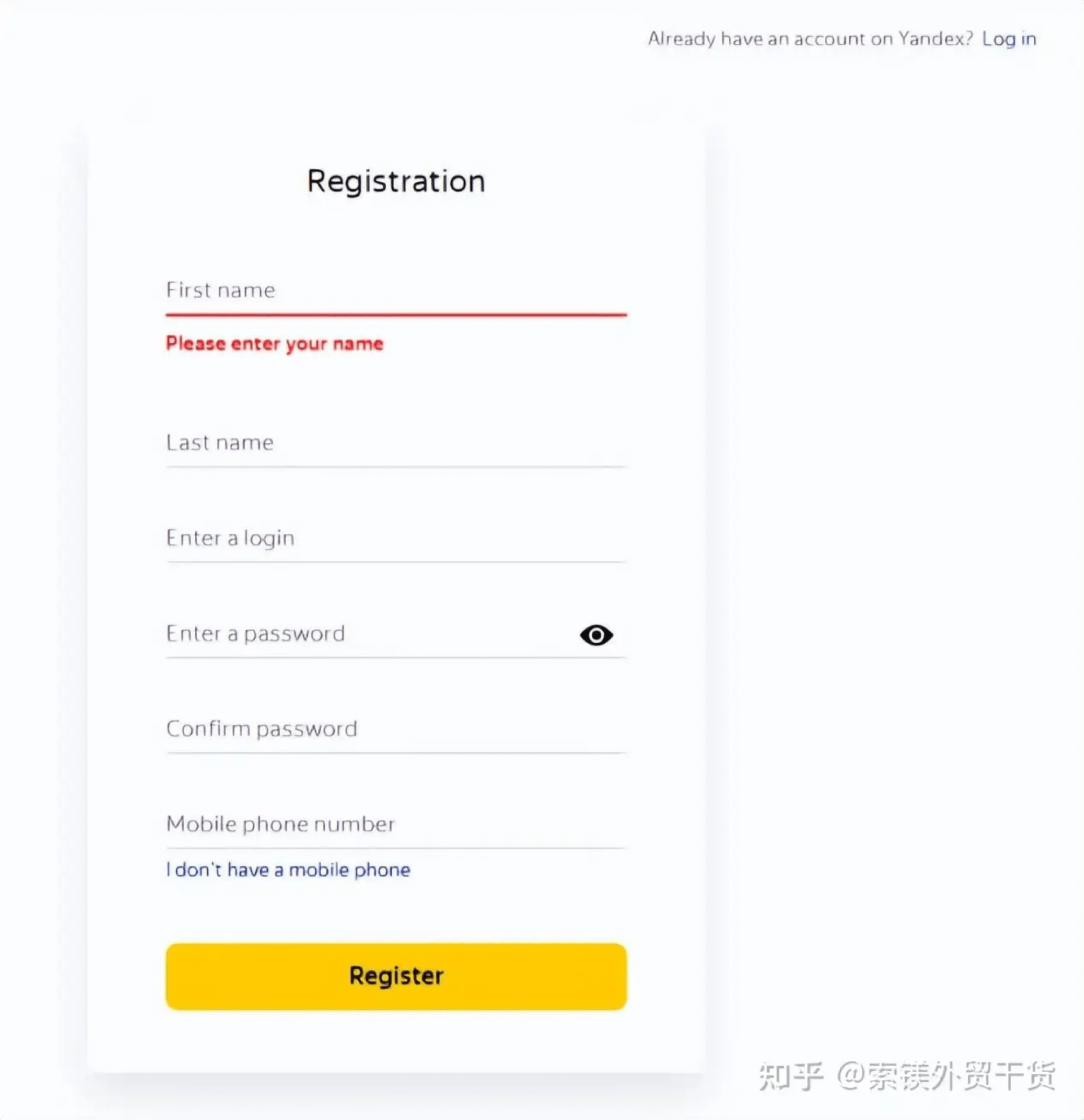 進(jìn)入網(wǎng)站,使用前需要登錄Yandex賬號(hào),若沒(méi)有賬號(hào),可免費(fèi)注冊(cè)。