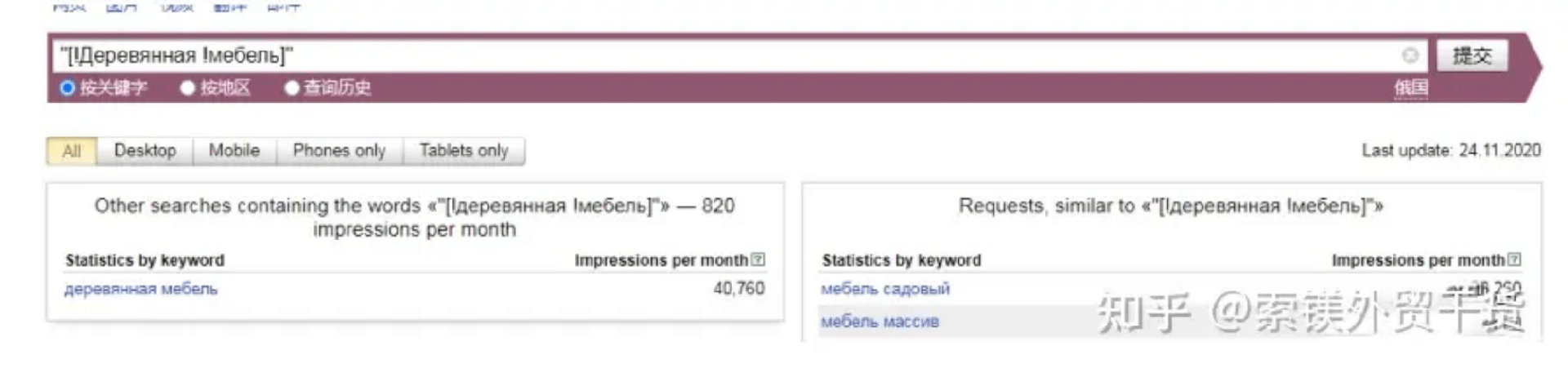 如木質(zhì)家具在莫斯科,需要在介詞“在”的前面加上“+”,才能得出準(zhǔn)確的搜索需求。